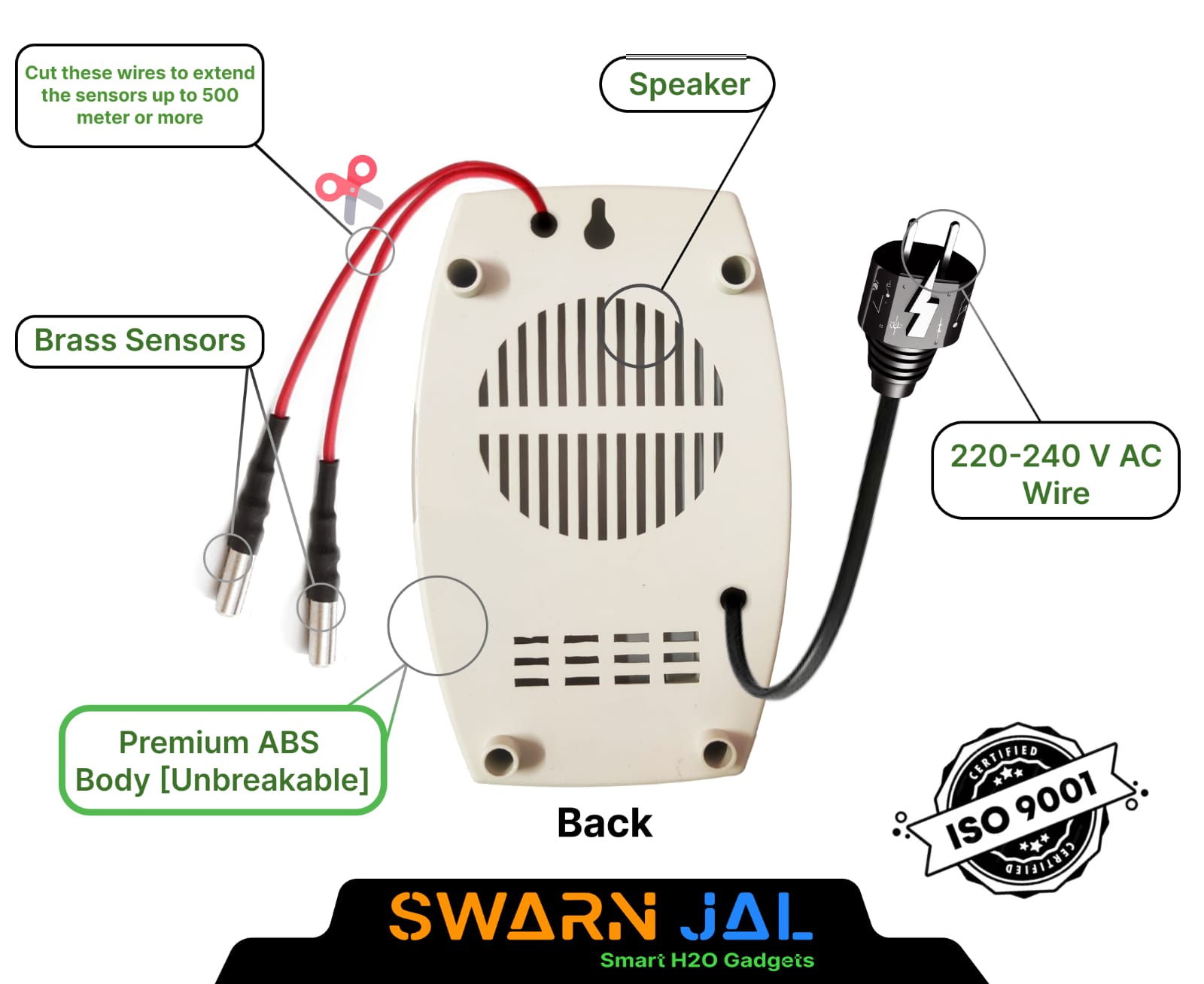 Swarn Jal® (Model: A-RI) Water Tank Overflow Alarm in India, AC 220V Powered, Loud Human Voice, Magnetic Isolation, Shock-Proof Technology