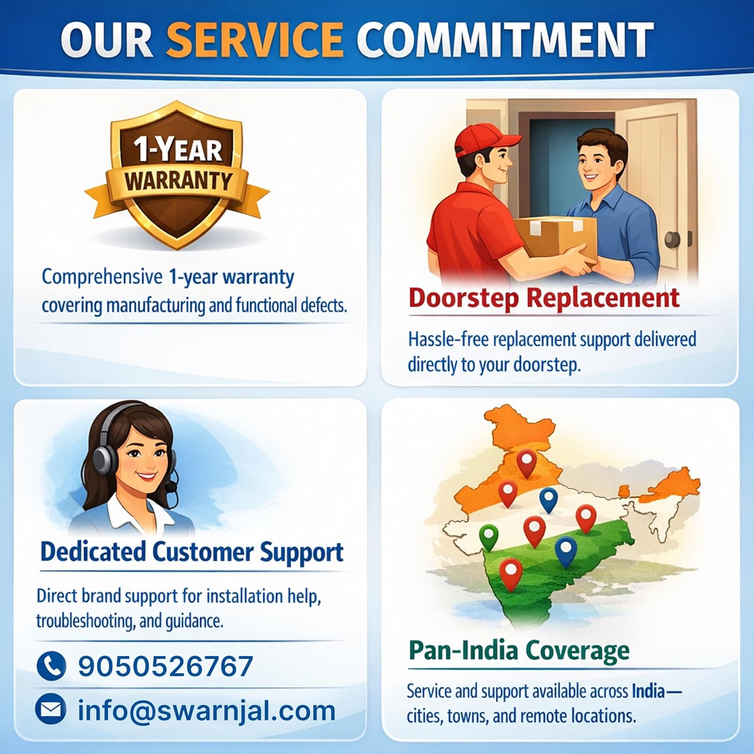 Motor SupportUp to 1 HP. For more than 1 HP Motor, Contact Swarn Jal Support. (Only minor changes will be required.)